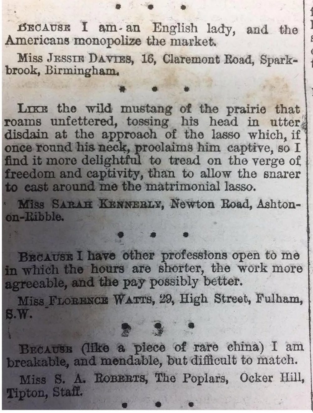 Why I’m unmarried, 1899.