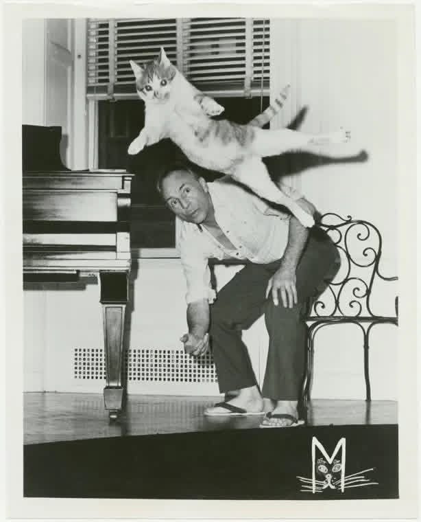 George Balanchine and his cat Mourka, by Martha Swope, 1964.